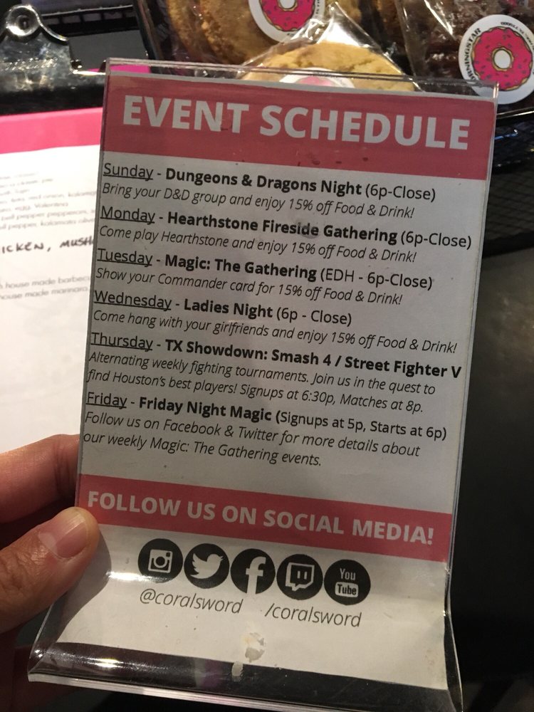 Coral Sword is a vibrant cafe located in Houston, TX, offering a unique experience for board game enthusiasts and food lovers alike. With a plethora of board games available for unlimited play, this establishment creates a welcoming atmosphere for groups and families. Customers praise the diverse selection of games and the community events hosted here. The cafe also serves quality coffee and drinks, providing excellent service and a fun vibe. Additionally, Coral Sword offers a variety of food options, including vegan and vegetarian dishes, making it a great choice for all dietary preferences. The cozy outdoor seating, free Wi-Fi, and accommodating staff contribute to the overall appeal of this cafe. Whether you're looking for a place to unwind with friends or enjoy a casual meal, Coral Sword is a must-visit destination in Houston.
